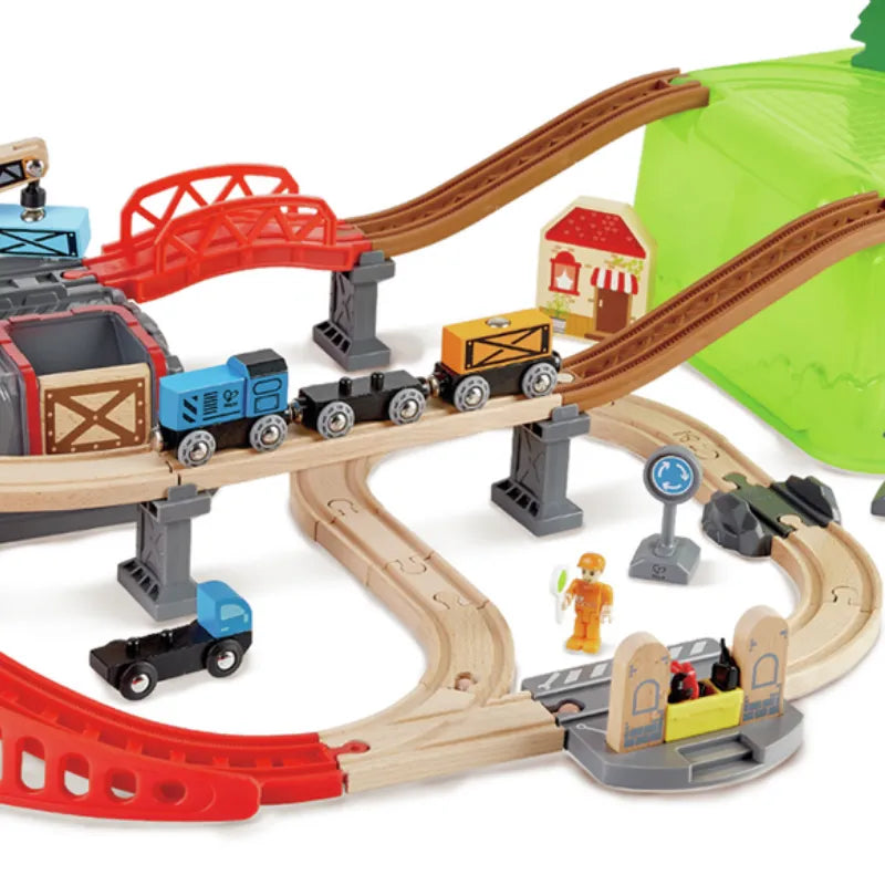 Conjunto de Trem de Madeira 50 Peças Engenharia com Guindaste Magnético